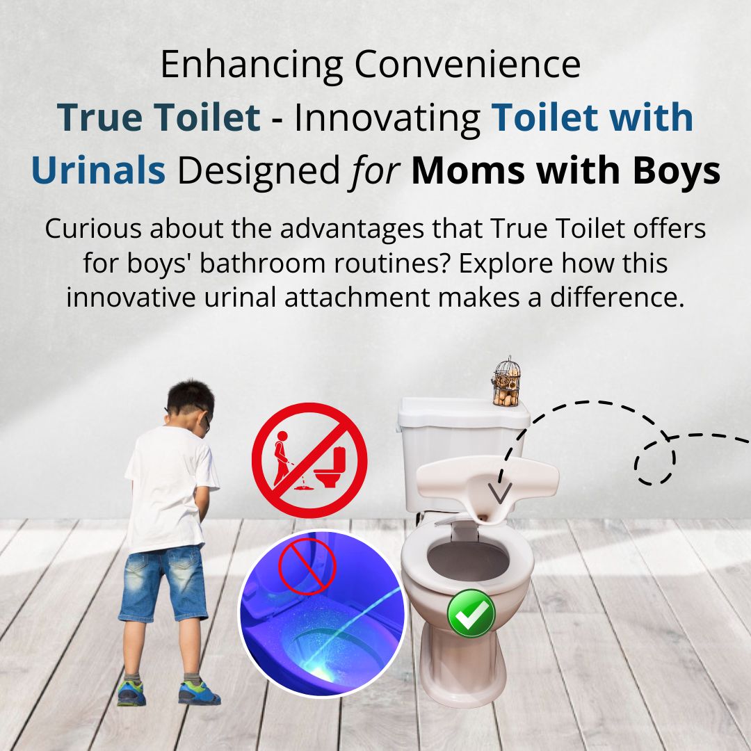 EXPERIENCE MESS-FREE URINATION EASE WITH TRUE TOILET URINAL FOR MOMS WITH BOYS.